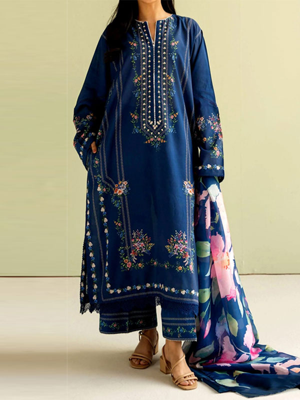 Dhanak Heavy Embroidered Dress With Kortai Printed Shawl (Unstitched) (KD-258) Detail
