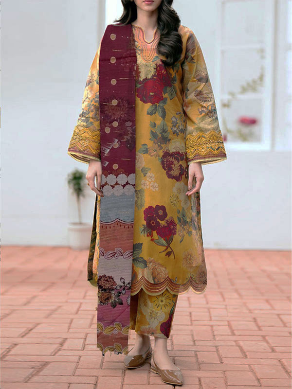 3 PCs Printed Khaddar Dress With Digital Printed Khaddar Dupatta (Unstitched) (KD-264)