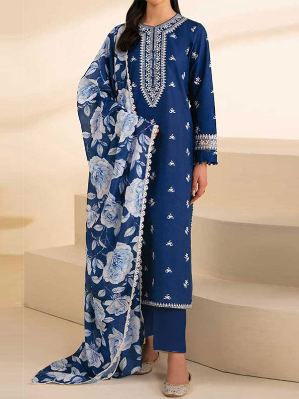 Linen Heavy Embroidered Dress With Printed Kortai Shawl (Unstitched) (LN-407) Detail